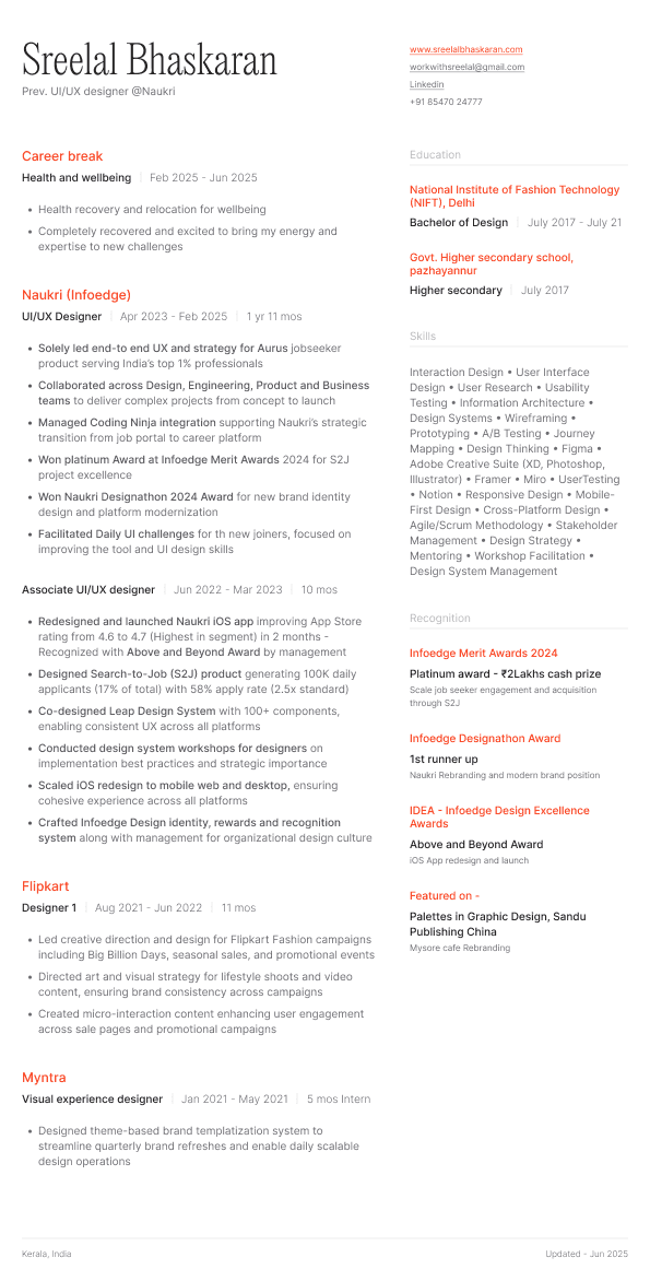 My journey started at National Institute of Fashion Technology, where I learned communication design and fell in love with product design. Since then, I've worked across fashion e-commerce to job platforms, always chasing that perfect user moment.